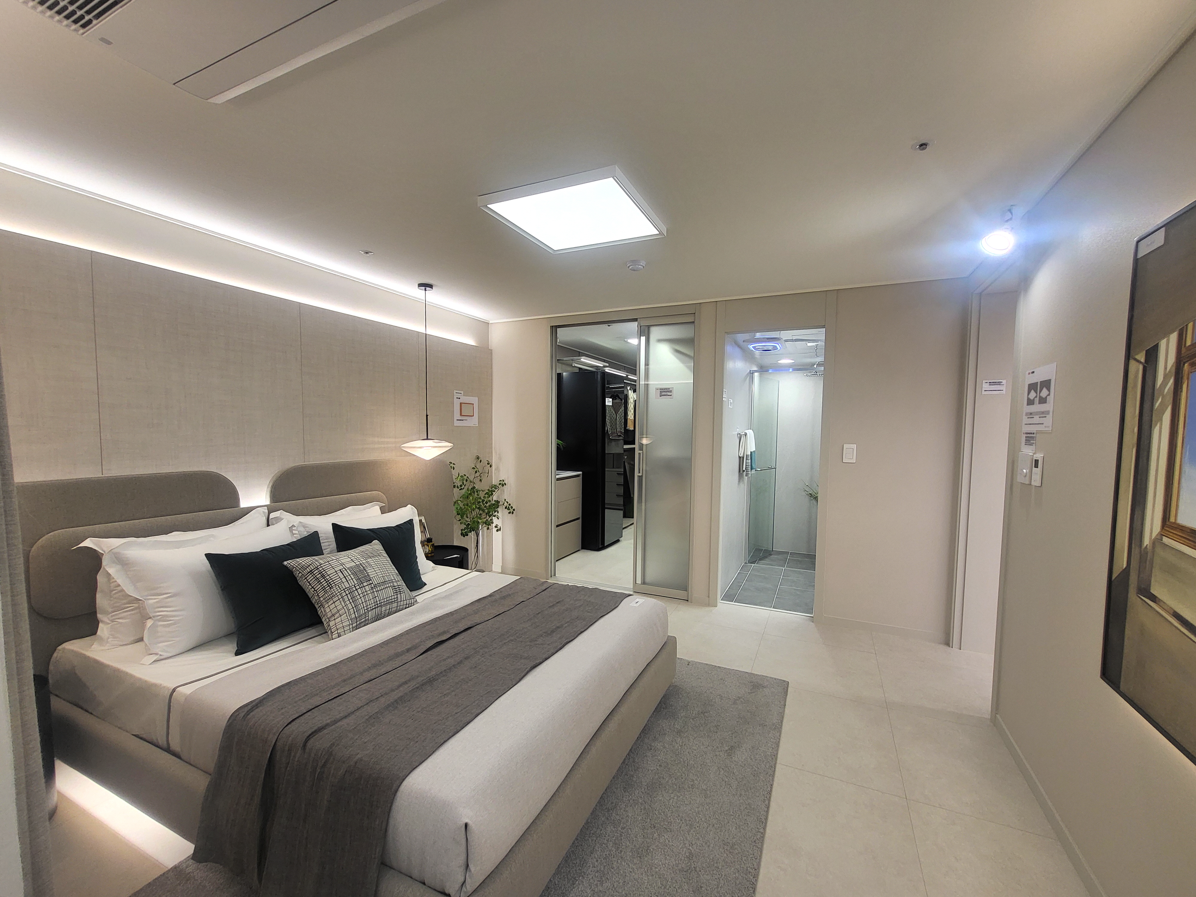 - 안방: 3.6m × 3.6m의 넉넉한 공간으로 설계되었으며, 조명과 터치형 스위치가 기본 제공됩니다. 추가적으로 유상 옵션을 통해 다양한 조명 및 편의 시설을 선택할 수 있습니다.
