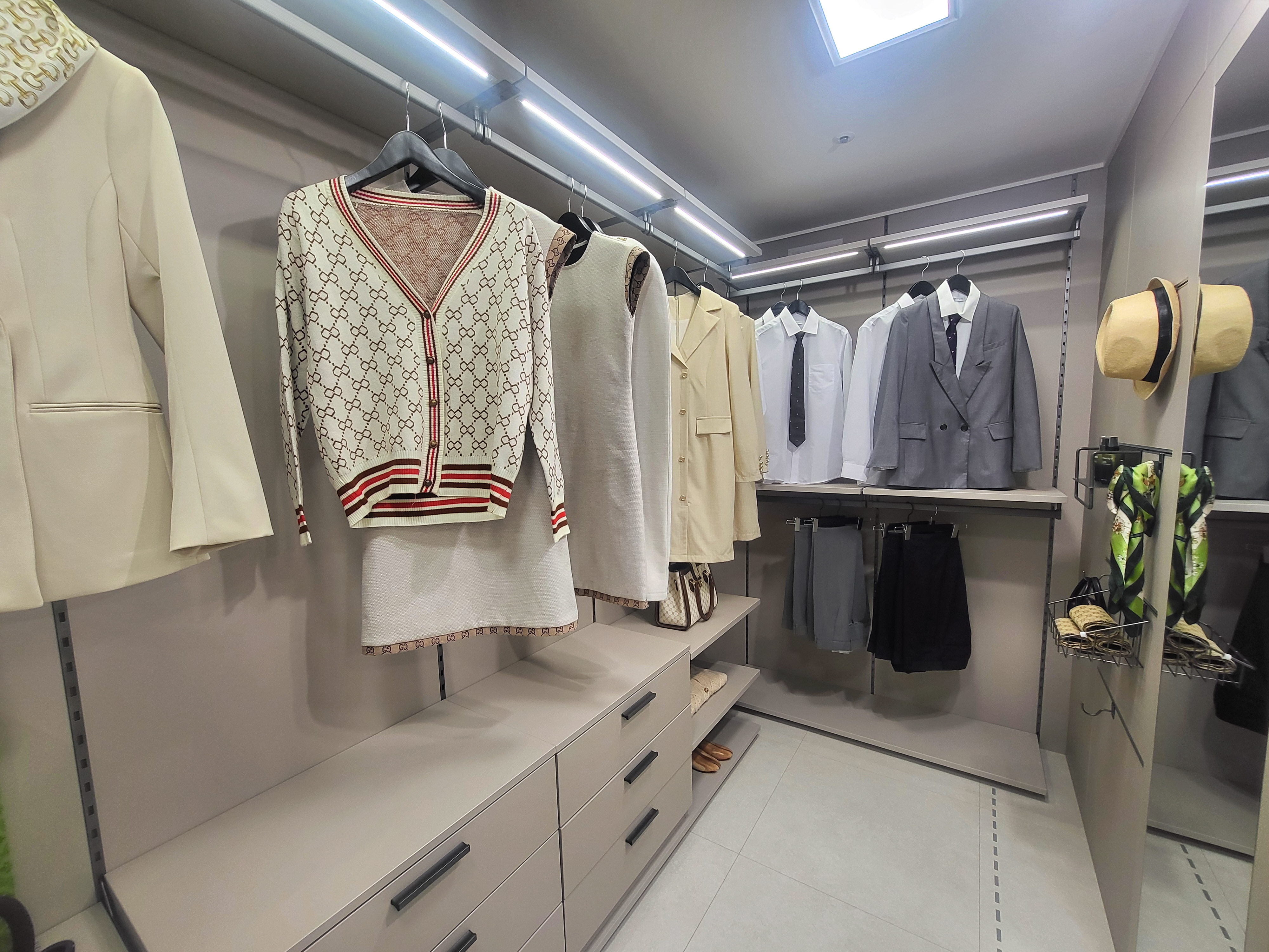 - 드레스룸: 3.7m × 1.76m 크기의 드레스룸이 기본 제공되며, 필요한 모든 의류와 악세서리를 수납할 수 있는 넉넉한 공간입니다.